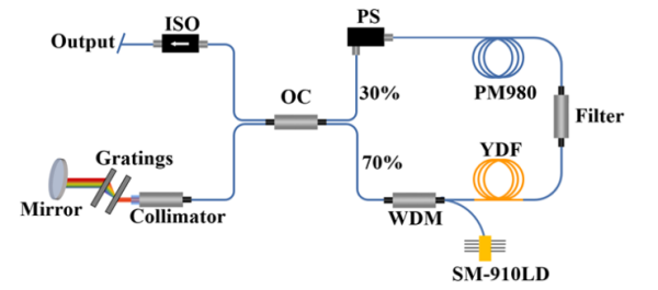 978 nm摻鐿飛秒鎖模光纖激光器因獨特的應用價(jia) 值而備受關(guan) 注。然而,由於(yu) Yb3+在978 nm波長附近的吸收截麵近似等於(yu) 發射截麵,為(wei) 了在這個(ge) 波長獲得高性能激光輸出,必須克服978 nm處的激光自吸收和1030 nm附近的放大自發輻射(ASE)等問題。此外,Yb3+在978 nm附近的增益帶寬相對較窄,這進一步增加了在該波長下獲得飛秒激光脈衝(chong) 的難度。因此,與(yu) 1 μm以上的傳(chuan) 統摻鐿鎖模光纖激光器相比,實現這種978 nm的飛秒光纖激光器麵臨(lin) 著更大挑戰。