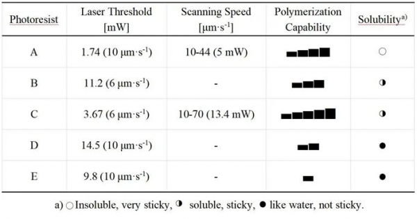 圖3 HAVE前驅體(ti) C配方雙光子聚合性能研究