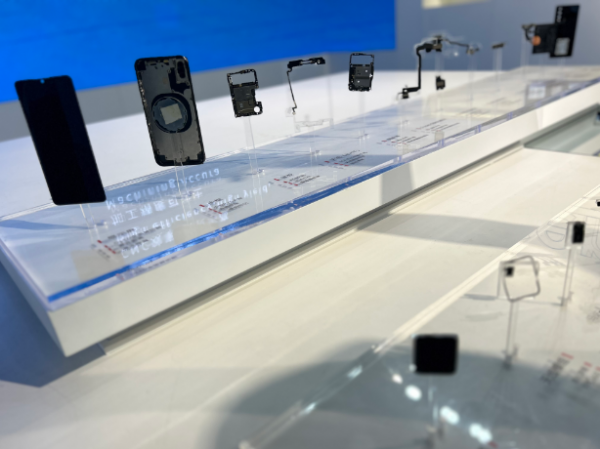 這一台小小的設備,集合了無線信號傳(chuan) 輸、自動化上下料、視覺識別、激光定製打標等多個(ge) 功能,“這是激光打標的微型自動化產(chan) 線,我們(men) 為(wei) 手機廠商提供的其實也是這樣的裝置,但會(hui) 針對不同的加工需求,定製不同的設備、產(chan) 線。”華工激光工作人員向澎湃新聞(www.thepaper.cn)介紹,當前3C消費電子行業(ye) 70%以上製成工藝由激光技術實現,而華工激光能為(wei) 3C消費電子行業(ye) 提供激光自動化裝備、智能製造自動化產(chan) 線、智能製造智慧工廠,“我們(men) 已為(wei) 一線品牌廠商提供了2萬(wan) 多套裝備自動化產(chan) 線,包括華為(wei) 、Google、蘋果、小米等。”