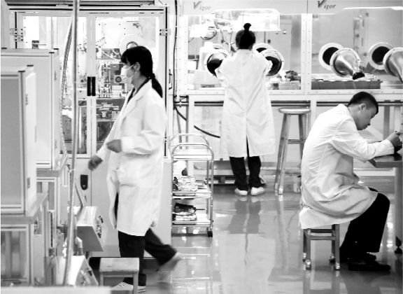 6月19日,位於(yu) 鞍山市高新區激光產(chan) 業(ye) 園內(nei) 的遼寧星空鈉電電池有限公司生產(chan) 車間內(nei) ,工人在加緊趕製訂單產(chan) 品。該公司是國內(nei) 首批研究鈉離子電池的企業(ye) ,主營業(ye) 務包括鈉離子電池研發生產(chan) 和儲(chu) 能技術開發應用,是鞍山激光產(chan) 業(ye) 集群的代表性企業(ye) 。