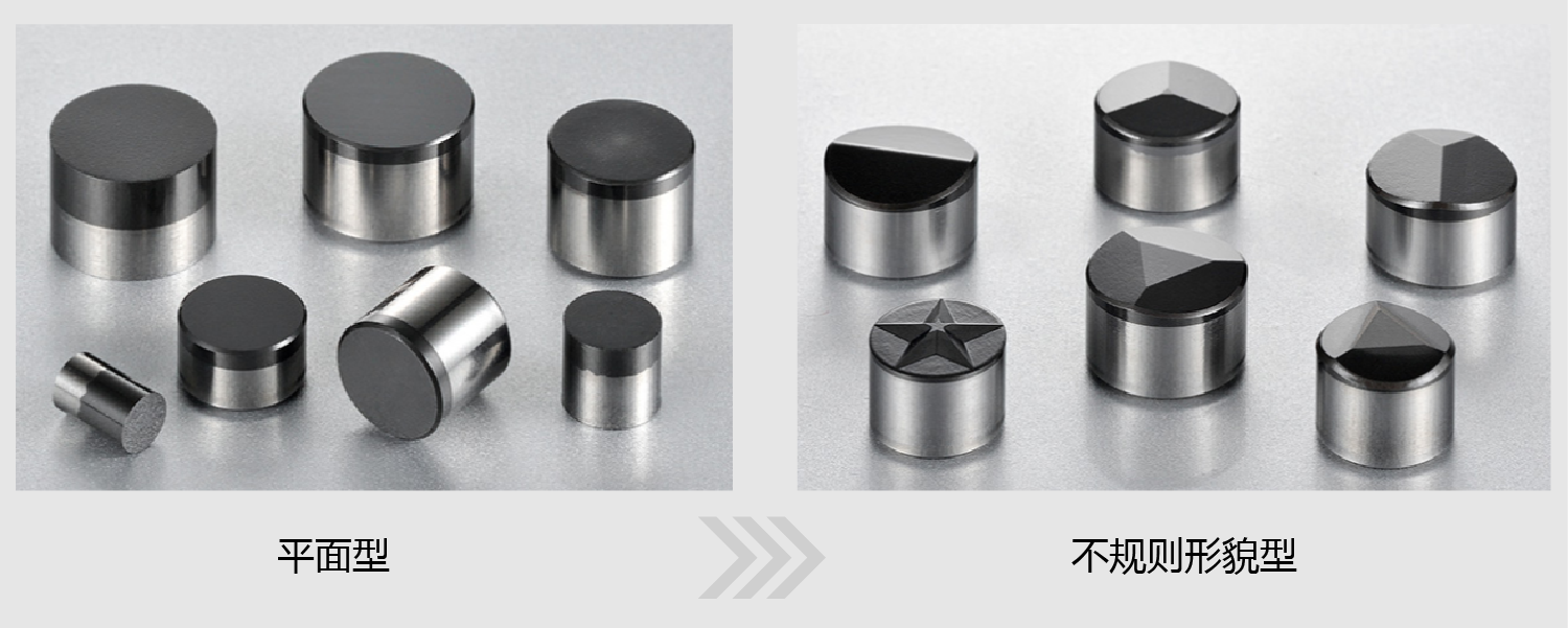 隨著石油勘探麵臨(lin) 的環境越來越苛刻,尤其是傳(chuan) 統平麵金剛石複合片鑽頭遇到高研磨性地層、極堅硬岩層、堅韌夾層等地質岩層時,鑽頭難吃進,同時亦發生平麵金剛石複合片不出刃、崩齒等嚴(yan) 重失效形式。此時,需將鑽頭上的金剛石複合片平麵結構,生產(chan) 成屋脊狀的不規則形貌,以提升鑽頭的鑽探能力和效率。如下圖所示。