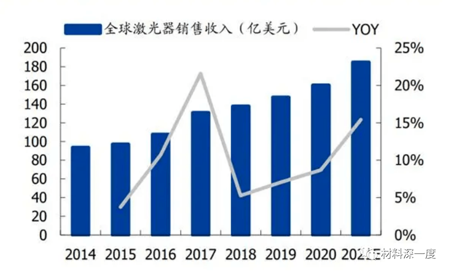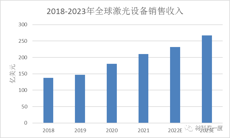 激光設備是集合多種先進技術的高科技終端設備,該行業(ye) 是目前各國最為(wei) 關(guan) 注和發展最為(wei) 迅速的行業(ye) 之一。近年來,全球激光產(chan) 業(ye) 市場發展迅猛,並帶動激光設備產(chan) 業(ye) 收入增長。據《2022fun88官网平台產(chan) 業(ye) 發展報告》,2021年全球激光設備市場銷售收入約為(wei) 210.1億(yi) 美元,2018-2021年年均複合增長率約為(wei) 15.15%,預計2023年全球激光設備市場銷售收入將達到267.2億(yi) 美元。