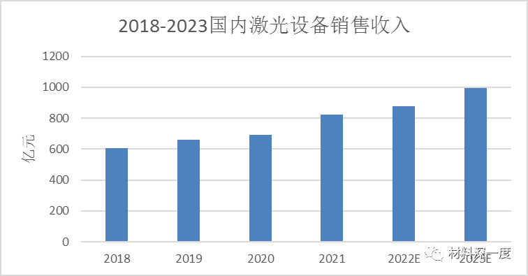 激光加工技術憑借其精度高、速度快、加工效果好等優(you) 勢正逐步實現對傳(chuan) 統加工技術的替代,並成為(wei) 我國大力支持和推廣的高新技術之一。近年來,各行業(ye) 對激光設備的需求不斷增長,我國激光設備市場規模快速增長。數據顯示,2021年我國激光設備行業(ye) 銷售收入達到821億(yi) 元,預計2023年國內(nei) 激光設備行業(ye) 銷售收入將達到994億(yi) 元。