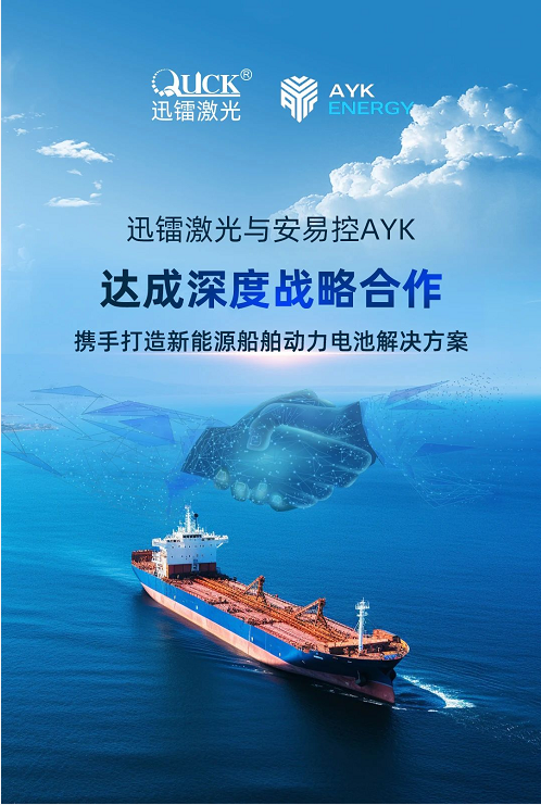 7月伊始,安易控·中國首個(ge) 新能源船舶動力電池係統自動化製造基地揭幕儀(yi) 式在珠海高新區隆重舉(ju) 行,迅鐳激光與(yu) 安易控達成戰略合作,雙方秉承開放、共贏的合作理念,在船舶動力電池係統領域全麵合作,共同為(wei) 船舶動力係統與(yu) 儲(chu) 能係統提供完整的解決(jue) 方案。