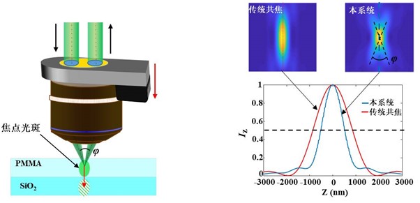 (a) 斜向激發與(yu) 收集光路 (b) 壓縮了散射體(ti) 軸向尺寸