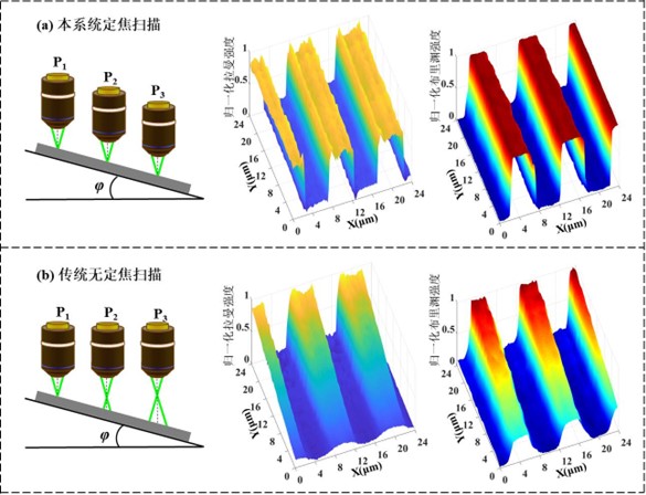 現有共焦拉曼/布裏淵光譜顯微成像技術由於(yu) 缺少高精度實時定焦能力,致使掃描過程中聚焦在樣品上的光斑大小隨著樣品的高低起伏而變化,從(cong) 而製約了共焦光譜顯微係統理論空間分辨力的實現;其次,由於(yu) 拉曼和布裏淵散射光譜強度較弱,成像積分時間較長,共焦光譜顯微係統極易受係統漂移的影響而導致離焦,進而影響空間分辨力和成像質量等;此外,在對生物組織切片樣品進行成像時,垂直入射產(chan) 生的熒光信號會(hui) 降低樣品拉曼光譜的信噪比,從(cong) 而影響拉曼光譜和布裏淵光譜探測的準確性,降低檢測精度。