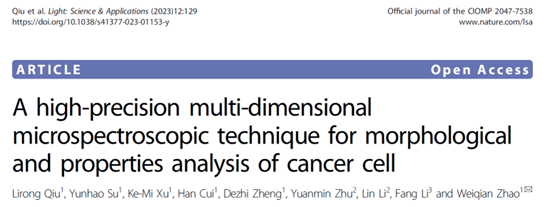 北京理工大學光電學院趙維謙教授課題組提出了具有高穩定、高分辨、抗散射的激光差動共焦拉曼-布裏淵圖譜成像新原理,研製成功了相應的儀(yi) 器,實現了樣品三維形貌、力學性能和化學組分的多維信息檢測,並與(yu) 北京大學航天臨(lin) 床醫學院(航天中心醫院)合作,利用該研製儀(yi) 器對腫瘤組織進行了有效表征分析。相關(guan) 工作發表在Light: Science & Applications上 (Light: Science & Applications,12, 129 (2023))。該研究工作以北京理工大學為(wei) 第一通訊單位,趙維謙教授為(wei) 通訊作者,邱麗(li) 榮教授為(wei) 論文的第一作者。