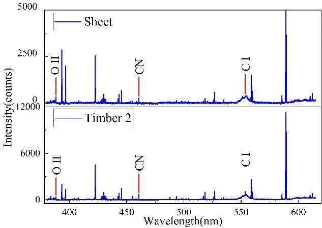 部分可回收垃圾樣品 LIBS 光譜圖(圖中標記為(wei) 元素特征譜線)