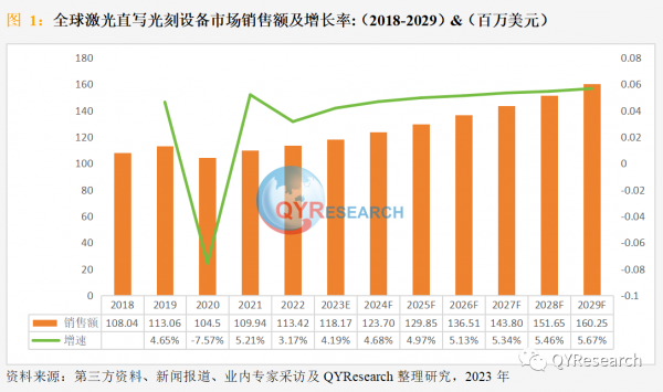 2022年全球激光直寫(xie) 光刻設備市場規模達到了113.42百萬(wan) 美元,預計2029年將達到160.25百萬(wan) 美元,2023-2029年複合增長率(CAGR)為(wei) 5.21%。