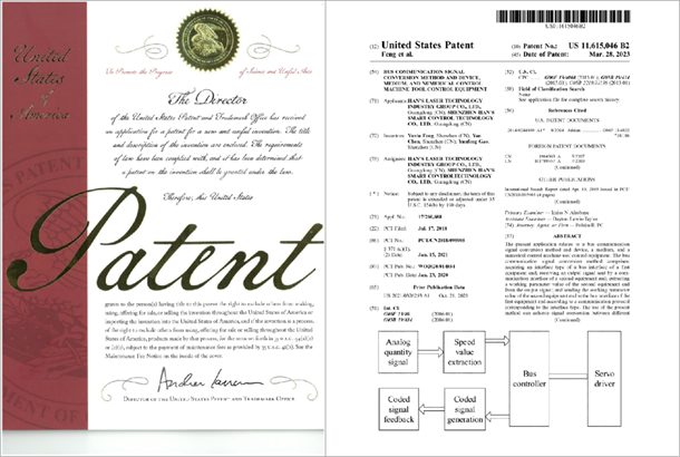 近日,大族智控核心技術“BUS COMMUNICATION SIGNALConVERSION METHOD AND DEVICE,MEDIUM,AND NUMERICAL ConTROLMACHINE TOOL ConTROL EQUIPMENT”獲得美國專(zhuan) 利授權。