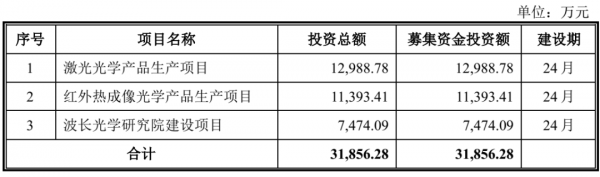 據了解,此次波長光電擬募資3.2億(yi) 元,資金主要用於(yu) 投資“激光光學產(chan) 品生產(chan) 項目”、“紅外熱成像光學產(chan) 品生產(chan) 項目”和“波長光學研究院建設項目”等項目。