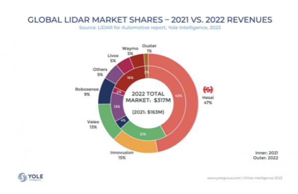 禾賽自成立以來,已累計交付超過19萬(wan) 台激光雷達。本季度禾賽的營收及激光雷達交付量,再次超過6家國際上市同行公司總和,持續領跑全球激光雷達市場。據國際權威研究機構Yole Intelligence最新報告,禾賽科技以強勁的實力獲得車載激光雷達領域多項全球第一,是唯一一個(ge) 連續兩(liang) 年蟬聯“多項全球第一”的中國企業(ye) 。2022年,禾賽激光雷達全球市占率為(wei) 47%,遠超第二名(占比為(wei) 15%)。 另據蓋世汽車研究院最新數據顯示,2023年上半年,禾賽科技在fun88官网平台雷達市場份額達51.4%,裝機量排名第一。