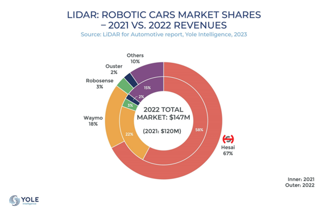 近年來,隨著智能駕駛技術的不斷發展,車載激光雷達在智能汽車應用領域的市場份額迅速擴大。根據Yole Intelligence新發布的《2023年全球車載激光雷達市場與(yu) 技術報告》,2022年被稱為(wei) fun88官网平台雷達市場的"量產(chan) 元年",其中,禾賽憑借卓越表現在市場中占據領先地位。