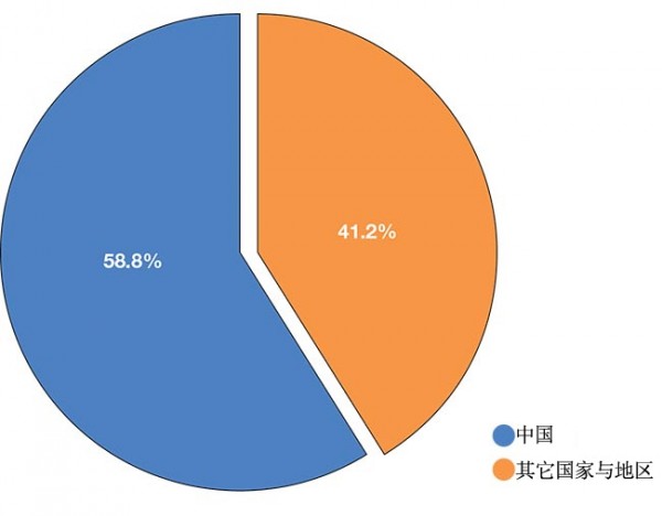 圖2:工業(ye) 激光器的全球市場份額。2022年,中國在全球工業(ye) 激光市場的份額略有下降,降至58.8%。