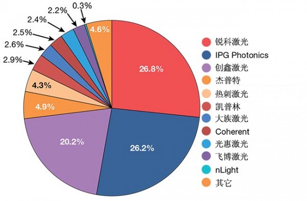 圖4:光纖激光器供應商在中國的市場份額。銳科激光取代IPG成為(wei) 新的市場領導者。