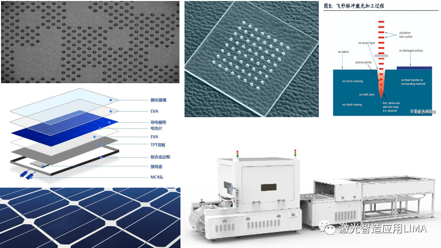 1. 電池片加工:激光打孔常用於(yu) 太陽能電池片的加工。這些小孔可以用來提高電池片的光吸收效率,減少反射損失,從(cong) 而增加光電轉換效率(陷光效應)。激光打孔可以在矽片、多晶矽片和其他太陽能電池材料上進行精確而高效的加工。