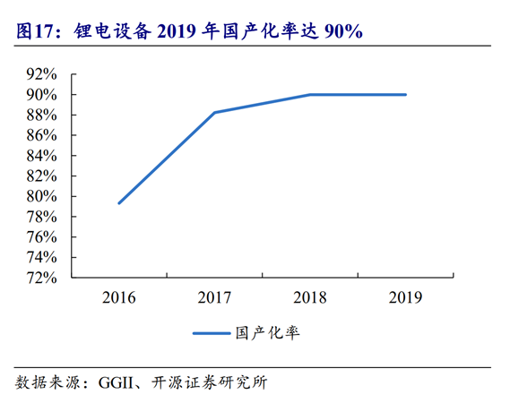鋰電池設備材料的國產(chan) 化率進程,直接決(jue) 定了電池價(jia) 格下降的速度。