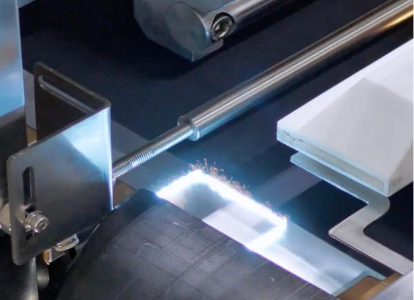 搭載500W激光器,盛雄激光的製片機產(chan) 能可以達到240PPM,並且同時完成極耳切割、V角切割和料區裁斷。在切割極片時,500W激光器品質更高,熱影響區小,不容易產(chan) 生熔珠且不會(hui) 發生漏出鋁箔或漏出銅箔的現象,加工邊緣整齊順滑,不產(chan) 生毛刺。