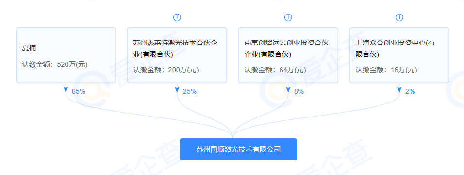 據資料顯示,國順激光成立於(yu) 2021年12月,注冊(ce) 地位於(yu) 中國(江蘇)自由貿易試驗區蘇州片區蘇州工業(ye) 園區,是一家專(zhuan) 注應用於(yu) 精密加工中的高功率超快微納結構光纖激光器科技創新型企業(ye) ,曾分別獲評2022年度姑蘇創業(ye) 領軍(jun) 企業(ye) 和蘇州工業(ye) 園區創業(ye) 領軍(jun) 企業(ye) 。