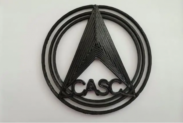 在軌太空3D打印的航天科技集團CASC標誌,由碳纖維的長絲(si) 連續構成
