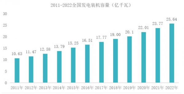電力行業(ye) 是國民經濟中最重要的基礎能源產(chan) 業(ye) ,與(yu) 國計民生具有密切聯係。為(wei) 應對我國用電需求的持續增長,緩解電力供應緊張的局麵,在中央和地方政府的推動下,我國電力建設大規模展開。 2022年我國發電裝機容量已達到 25.64 億(yi) 千瓦。因此,電力設備企業(ye) 發展前景十分廣闊。