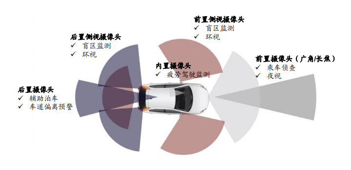 自動輔助駕駛是構架在車載攝像頭這個(ge) 最重要的光學傳(chuan) 感器上的。從(cong) 攝像頭來看,光學成像機製可概括為(wei) 當光線透過鏡片後匯聚在圖像傳(chuan) 感器,傳(chuan) 感器記錄其圖像信息並通過模數轉換器將其轉化為(wei) 數字信號,然後交由圖像處理器進行後期優(you) 化,最終交給圖像處理芯片處理,攝像頭模組的主要構成為(wei) CMOS圖像傳(chuan) 感器和鏡頭組。麵向高階自動駕駛環境感知需求,攝像頭清晰度變得更高,以探測更長距離和獲取更多信息。