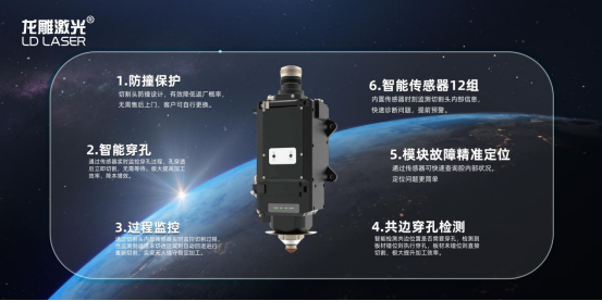 提及8萬(wan) 瓦激光切割,用戶最為(wei) 擔心一點的非切割頭穩定性莫屬。龍雕激光采用全新的柏楚係統搭配波刺8萬(wan) 瓦智能激光頭,既能實現對切割過程中氣壓、保護鏡/聚焦鏡汙染、核心腔體(ti) 溫度等環境數據實時監測與(yu) 反饋,還具備監控切割過程(如切割過程中發現切不透會(hui) 自動回切)、智能穿孔、智能收刀等智能化功能,足以實現長時間滿功率穩定切割。
