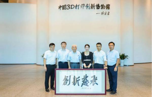 光韻達聯合創始人執行董事、創新中心創辦人姚彩虹,創新中心聯合創始人、協同高科總經理趙良兵,創新中心聯合創始人、CTO、雲疆智造總經理羅盟博士等熱情接待來訪貴賓,並就創新中心發展、核心技術、發展前景及目前存在的核心問題與林老一行進行了深入交流。早在2019年5月6日,林老出席並見證了創新中心的開園儀式,並為“3D打印創新博物館”題字,結下深厚情緣。本次到來,為廣東省增材製造裝備創新中心和協同高科創始團隊送來“創新發展”的勉勵題詞。光陰荏苒,林老仍保持著昂揚的熱情不斷調研,奔赴一線,心係激光與增材製造的發展,本次到訪創新中心。當初的創新中心現已獲批籌建廣東省增材製造裝備創新中心,核心以麵向航空航天等重大工業領域的輕量化、高性能、數字化智能化為目標,通過連續纖維、金屬、陶瓷增材製造等多種多材料3D打印技術及裝備產品研發、應用,致力於推動產業化進程與創新發展。林老一行走訪連續纖維實驗室、陶瓷實驗室以及金屬3D打印生產車間,對創新中心團隊掌握自主知識產權,突破“卡脖子”技術,實現特種裝備的國產化和產業化接觸給予高度評價和肯定,並寄厚望於廣東省增材製造裝備創新中心的籌建和發展。