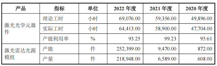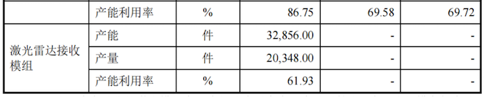 值得注意的是,招股說明書(shu) 披露的激光雷達光源模組、激光雷達接收模組的產(chan) 能利用率口徑中的產(chan) 量與(yu) 產(chan) 銷率口徑中的產(chan) 量存在數據“打架”情況。