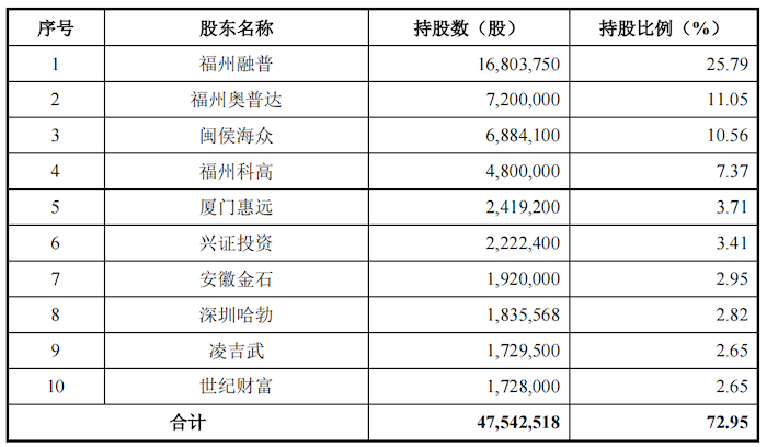 值得注意的是,海創光電的股權結構較為(wei) 分散。公司實際控製人為(wei) 淩吉武,本次發行前,淩吉武直接持有公司僅(jin) 2.65%的股權。同時,淩吉武持有公司控股股東(dong) 福州融普66.67%的股權,通過福州融普控製公司25.79%的表決(jue) 權。