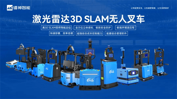 2017-2020年,鐳神智能投入研發激光雷達3D SLAM自然導航定位技術;2020-2023年,鐳神智能率先將研發成熟的激光雷達3D SLAM技術集成到叉車本體(ti) ,整機搭載7-8顆鐳神智能自研自產(chan) 的高性能激光雷達及天陸海導航的高精度光纖慣導/光纖混合慣導/MEMS慣導等傳(chuan) 感器,打造出全球領先的3D SLAM無人叉車係列產(chan) 品,完美解決(jue) 了傳(chuan) 統無人叉車反光板、二維碼、2D SLAM方案的場外不能使用、場景應用局限大,成本投入高以及部署繁雜、易爛尾等三大痛點。鐳神智能3D SLAM無人叉車可應用於(yu) 工廠自動化、倉(cang) 儲(chu) 自動化、港口自動化等應用場景,目前已累計服務150+行業(ye) 客戶,是全球範圍內(nei) 率先實現激光雷達3D SLAM無人叉車技術與(yu) 應用的開拓者。