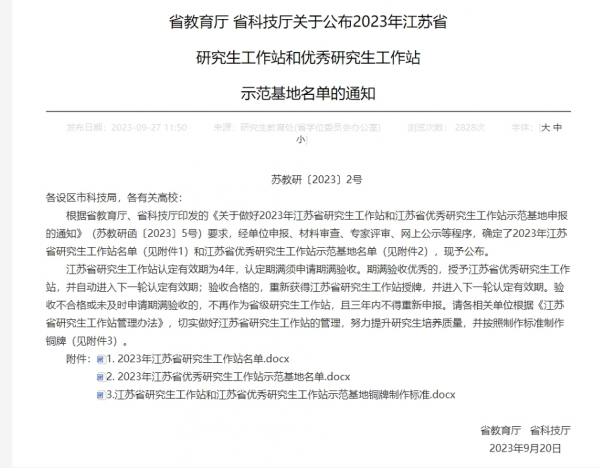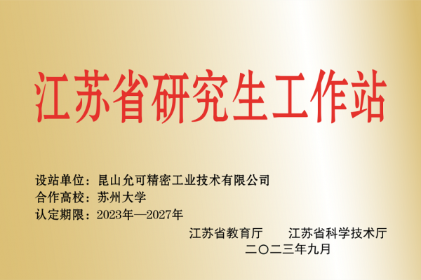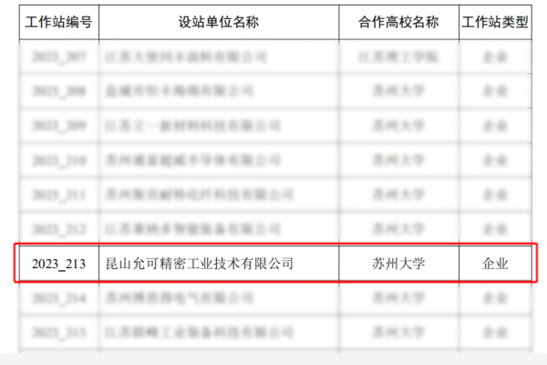 江蘇省教育廳辦公室和江蘇省科技廳聯合發布《2023年江蘇省研究生工作站和優(you) 秀研究生工作站示範基地名單的通知》。昆山允可精密工業(ye) 技術有限公司和蘇州大學合作共建的江蘇省研究生工作站成功獲批公示!