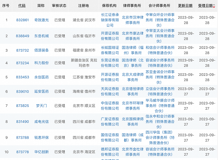 除此外,北交所方麵,節前一周更直接新受理了10家公司的申請。9月來北交所共計新受理了16家公司的申請。
