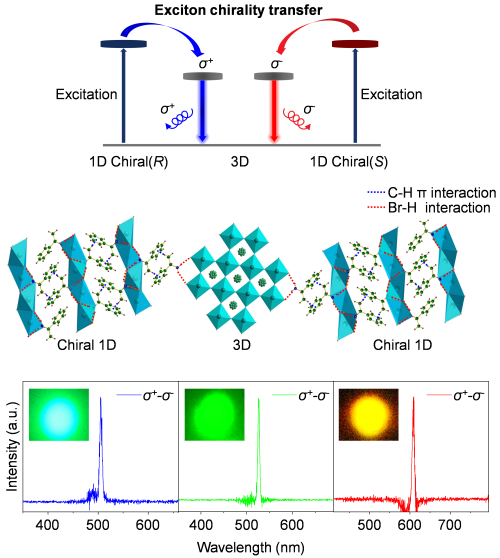 激子手性傳(chuan) 遞在1D鈣鈦礦錨定3D鈣鈦礦結構中實現自驅動自旋極化激光