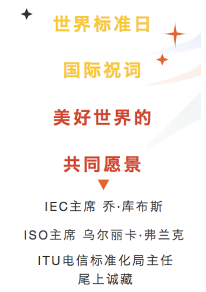 從(cong) 1970年10月14日第一屆世界標準日起,至2023年已經是第54屆。在第23屆世界標準日以前,均是由ISO和IEC主席聯合發出祝詞,從(cong) 第24屆開始,國際電信聯盟(ITU)也參加了世界標準日的紀念活動,由ISO和IEC主席及ITU秘書(shu) 長聯合發出祝詞。