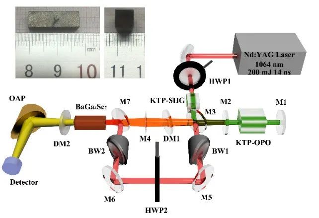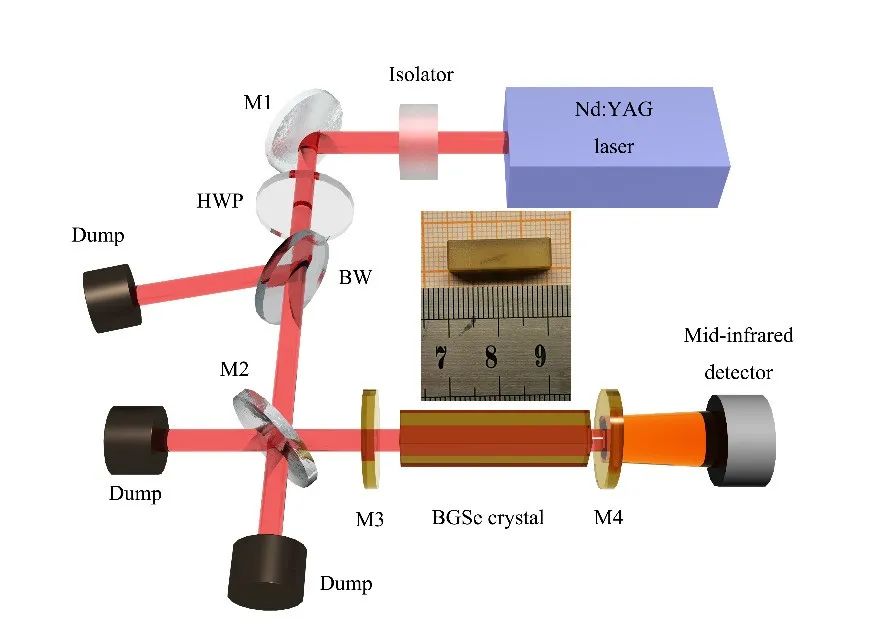 非線性晶體(ti) 是非線性光學頻率變換技術的核心器件,其物理與(yu) 光學特性直接影響激光源的輸出性能。相比於(yu) 氧化型晶體(ti) ,非氧化型晶體(ti) 在4μm以上受多聲子吸收效應影響較小,其在寬帶調諧中紅外激光產(chan) 生方麵具有顯著優(you) 勢。隨著材料科學與(yu) 晶體(ti) 生長技術的不斷發展,近年來不斷有新型非氧化型晶體(ti) 用於(yu) 可調諧中紅外激光產(chan) 生的相關(guan) 報道。考慮到近紅外1μm激光產(chan) 生技術泵浦結構相對簡單,且具有結構緊湊、體(ti) 積小、技術成熟的優(you) 勢,利用近紅外1μm激光泵浦非氧化型中紅外晶體(ti) 產(chan) 生寬帶可調諧中紅外激光具有極高的應用價(jia) 值。