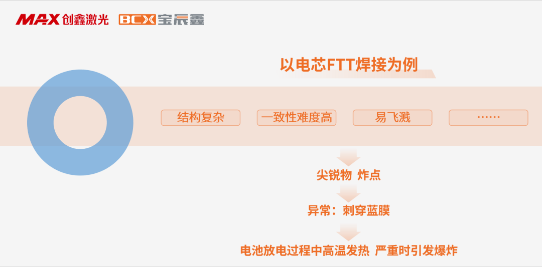 因為(wei) 其複雜的結構,傳(chuan) 統的激光焊接容易產(chan) 生大飛濺和炸點、尖銳物等異物,並很難做到表麵效果一致。異物極易引發刺穿藍膜的異常,從(cong) 而導致電池放電過程中高溫發熱,嚴(yan) 重時可能引起電池爆炸,為(wei) 此需要更先進的激光焊接工藝來完成此高難度的焊接需求。