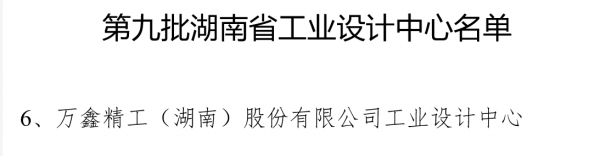 近日,湖南省工業(ye) 和信息化廳公布了第九批湖南省工業(ye) 設計中心名單,萬(wan) 鑫精工(湖南)股份有限公司工業(ye) 設計中心成功上榜,標誌著萬(wan) 鑫精工繼工程技術研究中心、企業(ye) 技術中心後,又添一項省級認定。 湖南省工業(ye) 設計中心是具有行業(ye) 示範作用的企業(ye) 工業(ye) 設計中心或工業(ye) 設計企業(ye) 。萬(wan) 鑫精工此次獲得省級工業(ye) 設計中心認定,代表著其設計創新能力、管理規範、發展水平全省領先,也是湖南省政府對萬(wan) 鑫精工產(chan) 學研建設的進一步認可。