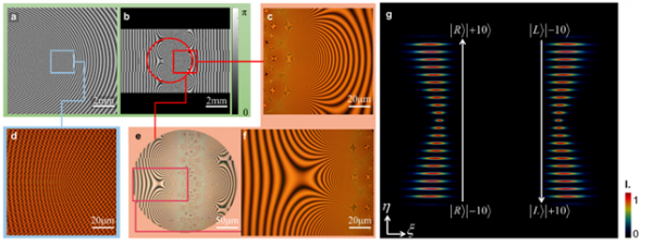 針對上述問題,為(wei) 實現大範圍高精度的光子TAM模式識別及按需調控,該團隊將波前複製引入光學空間坐標變換,結合光子自旋霍爾效應,設計並製備了高精度光子TAM態分離器件,如圖1(a~f)所示。實現了多達42個(ge) 光子TAM態的高精度分離,不同TAM態的光子分布於(yu) 分離平麵的特定區域,即可通過圖像處理等手段實現光子TAM態的識別與(yu) TAM譜測量,如圖1(g)所示。
