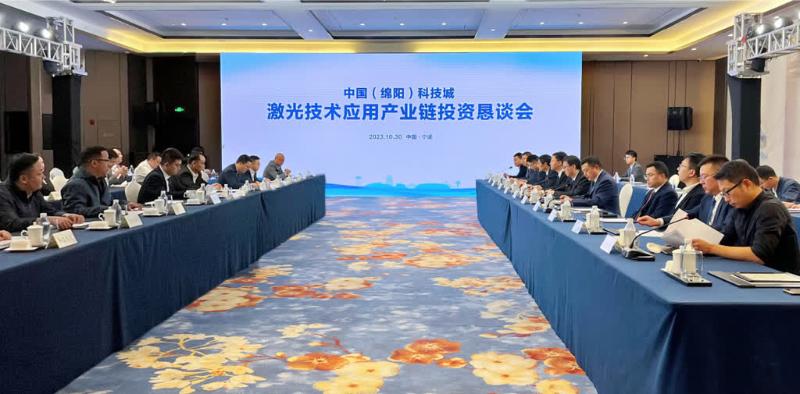 10月30日,中國(綿陽)科技城激光技術應用產(chan) 業(ye) 鏈投資懇談會(hui) 在寧波市南苑飯店舉(ju) 行,中國(綿陽)科技城光子技術研究院、綿陽華工激光科技有限公司負責人以及40餘(yu) 家長三角地區激光技術應用產(chan) 業(ye) 鏈企業(ye) 代表等齊聚一堂,共話發展。綿陽市委常委、副市長黃朝陽出席會(hui) 議並致辭,市政府副秘書(shu) 長劉驍主持會(hui) 議,市政府副秘書(shu) 長王肖出席會(hui) 議,遊仙區委書(shu) 記韓曉清作綿陽市遊仙區激光技術應用產(chan) 業(ye) 推介。