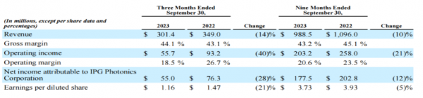 據財報顯示,2023年第三季度IPG實現營收3.01億(yi) 美元,同比下降14%;淨利潤為(wei) 0.55億(yi) 美元,同比下降28%,毛利率為(wei) 44.1%。