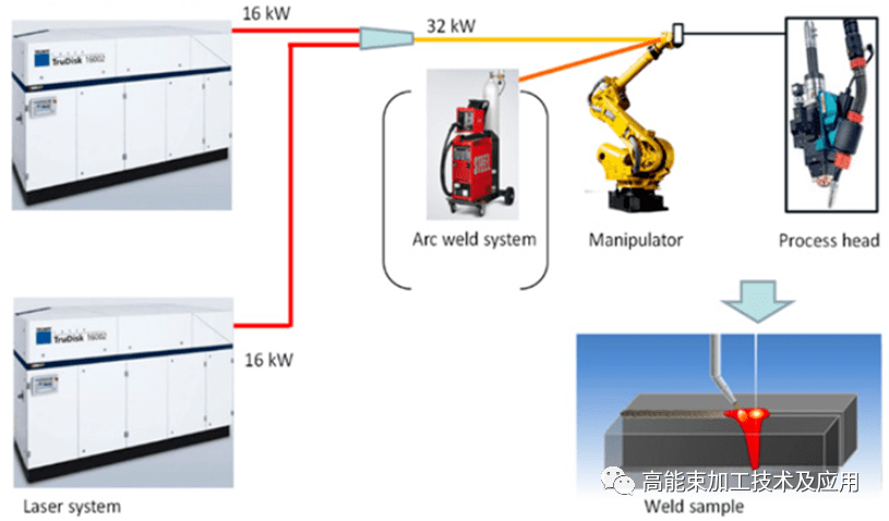 厚板(厚度≥20mm)焊接在航空航天、航海船舶、軌道交通等重要領域的大型裝備製造中扮演著關(guan) 鍵角色。這些構件通常厚度較大、接頭形式及服役環境複雜等特點。焊接質量對於(yu) 設備的性能和壽命有著直接的影響。傳(chuan) 統的氣保焊接方法由於(yu) 焊接速度慢、飛濺問題嚴(yan) 重,因此存在焊接效率低、能量消耗高以及殘餘(yu) 應力大等挑戰,難以滿足不斷提高的製造要求。然而,激光-電弧複合焊接技術與(yu) 傳(chuan) 統焊接技術不同,它成功融合了激光焊接和電弧焊接的優(you) 勢,具有熔深大、焊速快、效率高以及焊縫質量更優(you) 的特點,如圖1所示。因此,這種技術引起了廣泛關(guan) 注,已經開始在一些關(guan) 鍵領域得到應用。