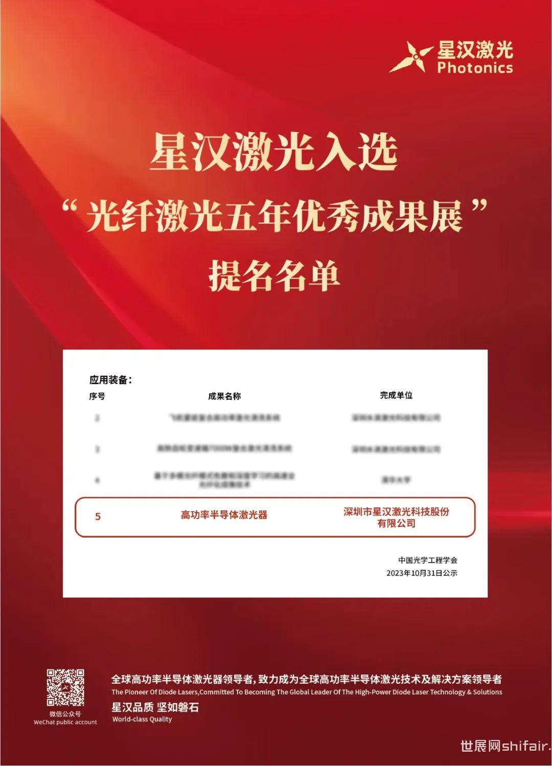 中國光學工程學會(hui) 組織開展的“光纖激光五年優(you) 秀成果展”活動,旨在全麵回顧和展示光纖激光領域的學術成果和與(yu) 產(chan) 業(ye) 鏈相關(guan) 的理論、技術、產(chan) 品的發展。希望通過這次活動,揭示其生態圈中的薄弱環節,並為(wei) 未來的發展方向提供有力支持,激發光纖激光更大應用潛能。星漢激光憑借“高功率半導體(ti) 激光器”產(chan) 品獲得提名。