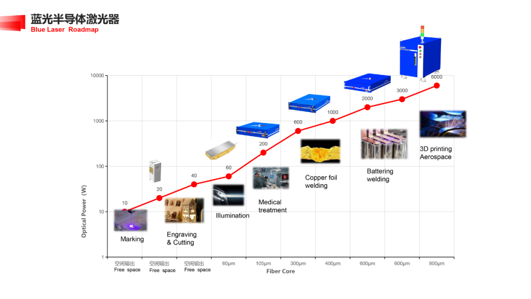在市場銷售端,根據激光器產品的應用的細分領域不同,劃分了不同的產品事業部,分別對應光纖激光器泵浦、激光雷達泵浦、固體超快激光器泵浦、藍光激光等產品類型。推出了高亮度的220μm輸出1800W半導體激光模組、車規級940nm波長-15W高可靠性激光雷達泵浦、1000W高功率鎖波976nm泵浦、200W高亮度105um光纖輸出藍光激光模組、以及千瓦級藍光激光器、多功率段紅外半導體激光器等。