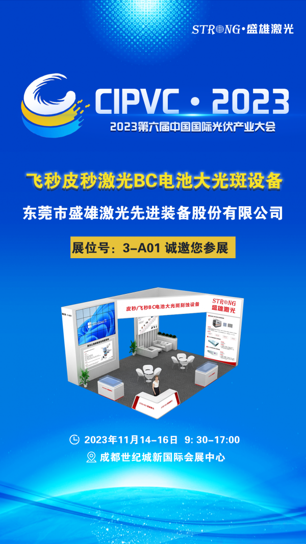 “雙碳新時代,綠色新未來”,2023年第六屆中國國際光伏產(chan) 業(ye) 大會(hui) 是中國西部首個(ge) 國際光伏盛會(hui) 。本次大會(hui) 將聚焦光伏產(chan) 業(ye) 資源、技術、人才優(you) 勢,涵蓋太陽能光伏、氫能、儲(chu) 能、風能等主題。東(dong) 莞市盛雄激光先進裝備股份有限公司將攜自主研發創新成果,為(wei) 本次大會(hui) 增光添色,並誠摯邀您領略未來科技,共襄行業(ye) 盛會(hui) 。