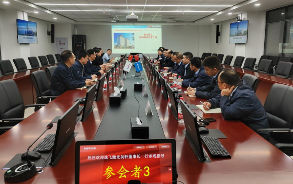 11月9日,逸飛激光董事長吳軒一行到訪銳科激光,並參觀了黃石智慧工廠,銳科激光副董事長兼總工程師閆大鵬、副總經理曹磊、副總經理劉曉旭陪同。