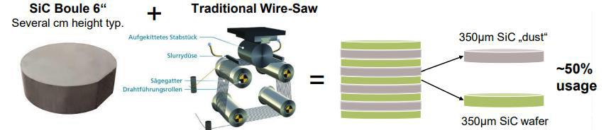 傳(chuan) 統多線切割導致珍貴的襯底材料在加工過程中的浪費