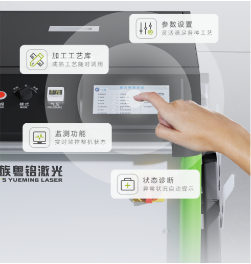 傳(chuan) 統焊接方式弊端日益凸顯 效率低·效果差·汙染大 隨著我國製造業(ye) 從(cong) 中低端向高端轉型升級快速演進,各種金屬製品對品質、外觀、性能的要求越來越高,傳(chuan) 統金屬焊接方式的弊端也日益凸顯。傳(chuan) 統電焊由於(yu) 焊接過程機械壓力大、熱量傳(chuan) 輸高等原因,容易造成焊縫不平,出現焊瘤、焊斑、焊渣等不良現象,甚至造成工件變形和損壞。因此,傳(chuan) 統焊接方式如電弧焊、電渣焊、氣焊等,對技術工人依賴性非常大,隨著用工荒的加劇,導致很多企業(ye) 用工成本的不斷增加。而且,傳(chuan) 統電焊方式會(hui) 產(chan) 生大量的有害煙塵、噪聲、高頻電磁輻射、光輻射等汙染,對人體(ti) 和環境造成很大危害。 手持激光焊接機實力替代 高效·高質·清潔·綠色 手持激光焊接機的出現,完美破解了金屬焊接行業(ye) 的各種難題,猶如開啟了一個(ge) 金屬焊接加工的嶄新紀元。手持激光焊接機采用高能量光束進行非接觸式快速焊接,焊接過程不需要借助填料介質,極大減少了金屬煙塵和有害氣體(ti) 的生成,更加清潔綠色。手持激光焊接方式具有熔深深、焊縫寬度小、熱影響區域小等特點,焊接速度快,工件變形小,焊縫美觀,無需二次打磨。激光焊接可應用於(yu) 不鏽鋼、碳鋼、鈦、鎳、錫、鋅、銅、鋁等多種金屬及其合金材質的焊接,可適用範圍非常廣泛,正在成為(wei) 眾(zhong) 多金屬焊接行業(ye) 的替代之選。 粵銘激光集團手持激光焊接機 一機多用·強“焊”多能 粵銘激光集團HW係列手持激光焊接機,集激光焊接、激光清洗、焊道清洗、激光切割四種功能於(yu) 一身,一機多用,性能強悍。作為(wei) 新一代激光焊接機型的典型代表,標誌著激光科技在金屬焊接領域應用的全麵升級。 HW係列手持激光焊接機手持激光頭采用輕量化設計,激光頭重量小於(yu) 1kg,女工也能輕鬆握持,符合人體(ti) 工程學的握持弧度設計,輕便靈活,久握不累;大尺寸彩色觸摸屏設計,加工參數可靈活設置,滿足各種焊接工藝需求;內(nei) 置加工工藝數據庫,成熟的加工工藝可隨時存儲(chu) ,下次加工時可隨時調用,簡單快捷,易學易用,新人無需複雜培訓即可操作使用,堪稱焊工“0”門檻機型,大幅降低企業(ye) 用工成本。 HW係列手持激光焊接機采用紅光輔助定位,氣體(ti) 自動控製,焊接速度快,穩定性高;采用高品質激光發生器,功率輸出均勻穩定,光束質量好,焊縫精細完美;焊接過程中的機器運行狀態實時監控,異常狀況自動提示,內(nei) 置式冷水機(可選配機櫃空調),冷卻效果強悍,高效散熱,確保焊接過程溫度恒定,確保加工品質始終如一。 粵銘激光集團HW係列手持激光焊接機,采用一體(ti) 式集成設計,體(ti) 積小,占用空間少,可靈活擺放,廣泛應用於(yu) 鈑金加工、汽車製造、家用電器、電梯製造、家具廚衛、廣告裝潢等領域,每年出貨量位居行業(ye) 前列,成為(wei) 傳(chuan) 統焊接方式的領軍(jun) 型替代之選,為(wei) 全球金屬加工行業(ye) 注入強勁活力。