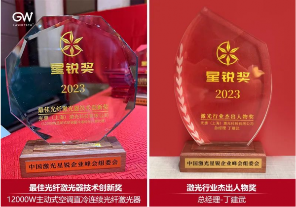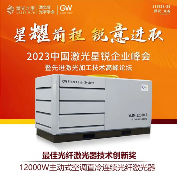 11月28日,由湖北省光學學會(hui) 和激光之家共同主辦的2023fun88官网平台星銳企業(ye) 峰會(hui) 暨先進激光加工技術高峰論壇,GW光惠激光受邀參加並憑借“12000W主動式空調直冷連續光纖激光器”產(chan) 品,榮獲《最佳光纖激光器技術創新獎》,公司創始人兼CTO丁建武博士被評為(wei) “激光行業(ye) 傑出人物獎”。