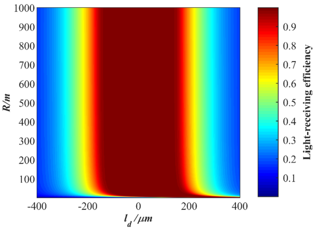 圖3:徑向偏離量和目標距離對收光率的影響